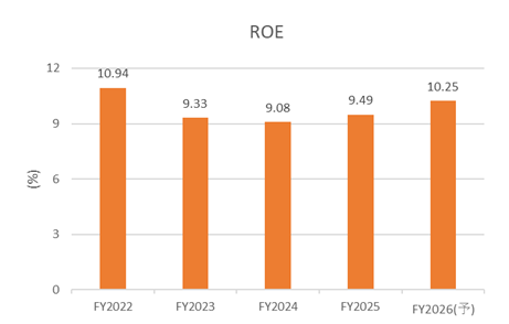 売上高は一時的に下振れしたものの、長期的には増加傾向が続いています。一方で、ROEは低下局面が見られ、収益性の質が悪化していた時期もありますが、足元では改善の兆しがうかがえます。