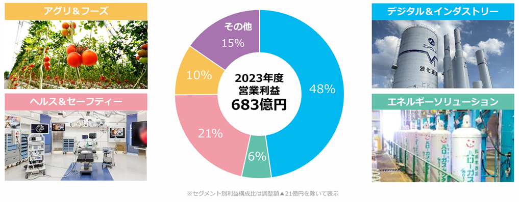 産業ガス大手であり、主力の産業ガス事業は顧客業界による需要の濃淡があるものの、価格改定や不採算取引の縮小が利益面に寄与しています。