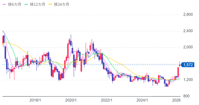 株価は直近の決算発表を受けて上昇基調にありますが、過去の水準と比較すると、割安圏から脱しつつある段階と位置付けられます。今後は売上成長に伴い、EPSの成長がどこまで加速するかが最大の注目ポイントとなるでしょう。