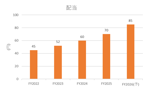 現状の配当利回りは1%程度と高くはありませんが、近年は継続的に増配を実施しています。配当性向35%を目安として増配を続ける方針であり、長期的には利回り向上が期待されます。