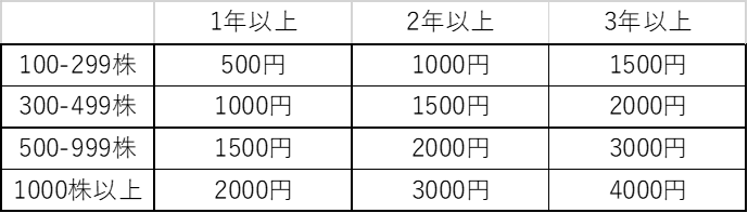 さらに、12月末に1年以上継続保有している株主には「長期保有株主優待」として、下記金額も追加頂けます。