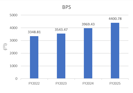 同社の成長性を考慮すると、そこまで割高感は感じられない水準にあるといえます。BPS(1株当たり純資産)が現在の株価と概ね同水準である点を踏まえると、一定の割安感があると考えられます。