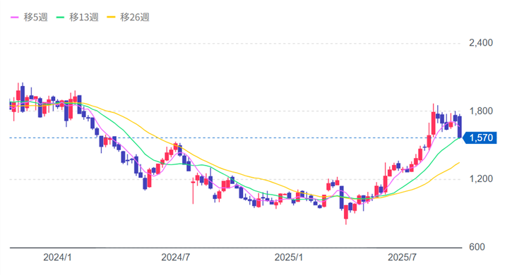 2022年頃にはウクライナ情勢の影響によりロシア産チタンの輸出制限が強化され、株価は急騰しました。その後は調整局面を経て軟調に推移しましたが、関税ショックを機に再び反発の兆しが見られています。